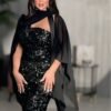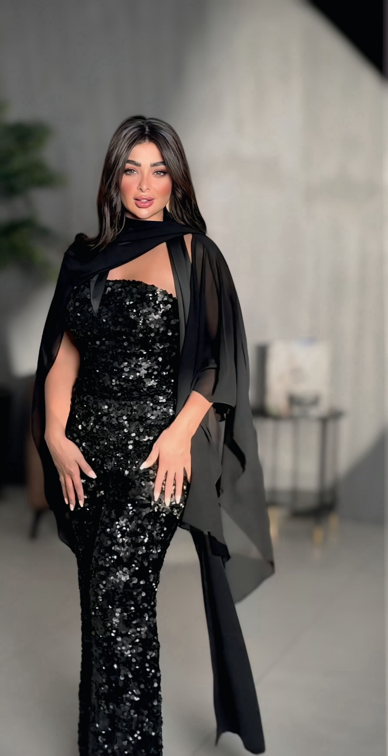 بدله بنطلون 3 قطع ترتر اسود مع شيفون وحرير ممكن تطلبنها تنوره بدل البنطرون